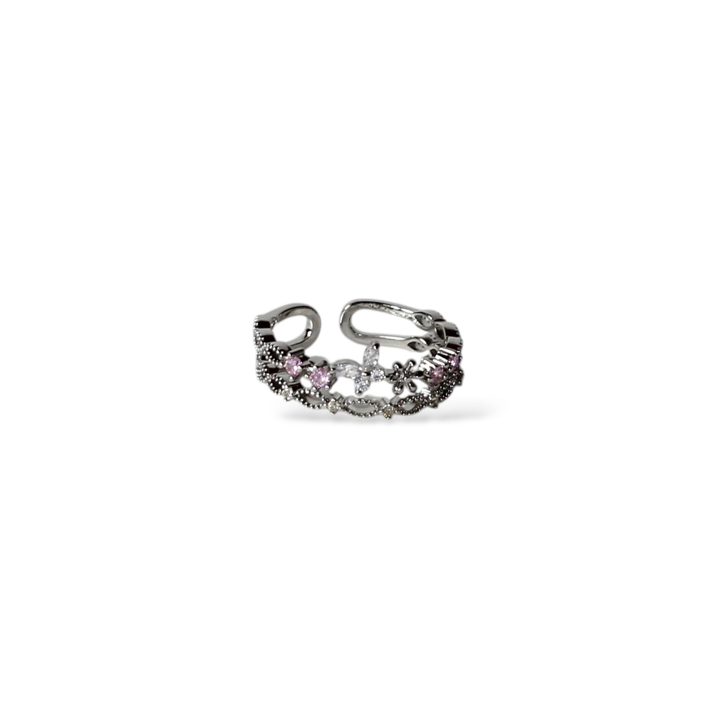 Pembe Taşlı Çiçek Yüzük