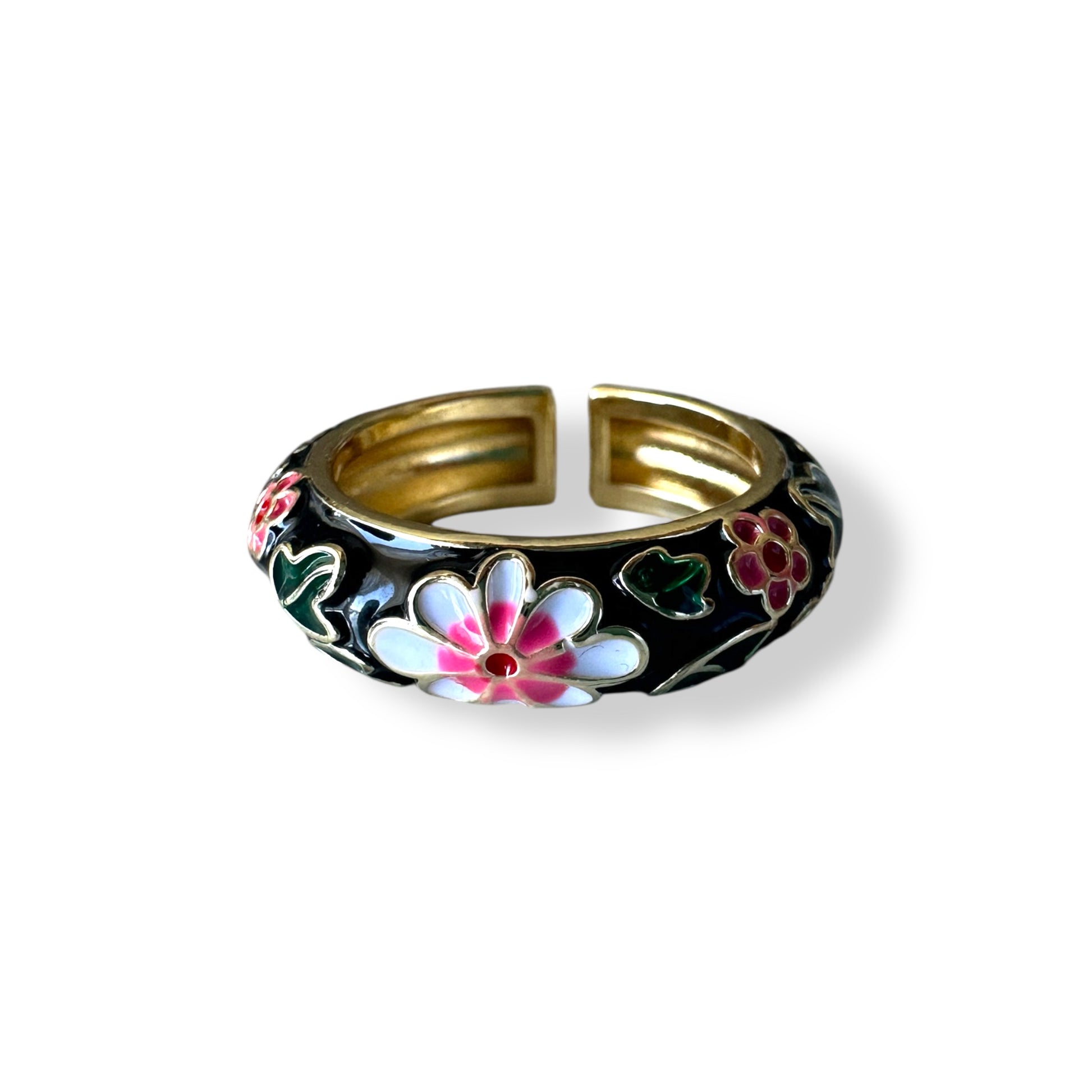 Siyah Mineli Çiçek Yüzük